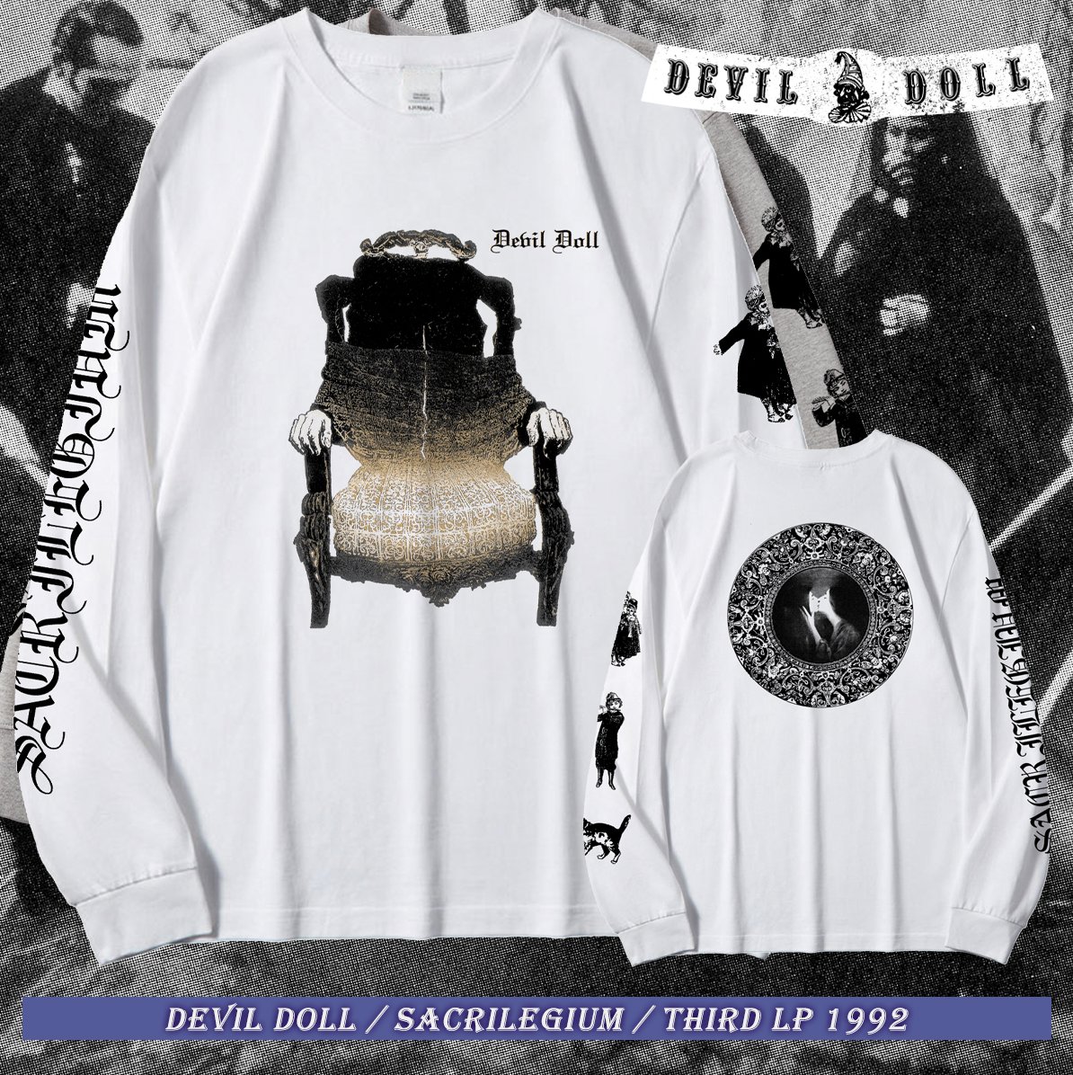 Design of iconic 1992 third LP, Sacrilegium, updated with restrained modernity. Professional hand-made silk long sleeve shirts, with design on front, back, and both sleeves. Top quality unbranded heavy duty 240g EU size.
